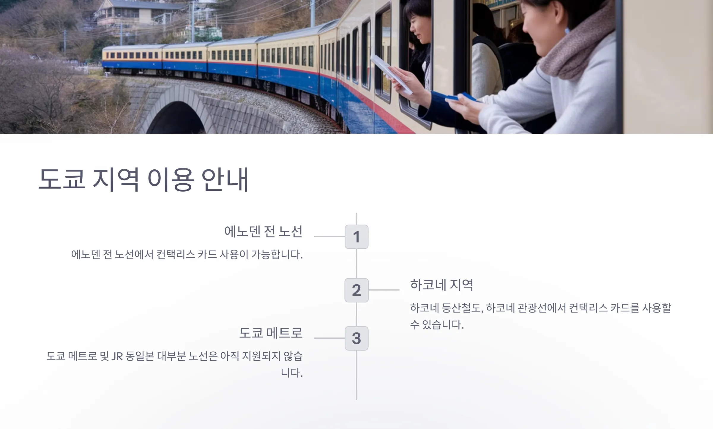 • 도쿄 메트로 및 JR 동일본 대부분 노선은 아직 지원되지 않음