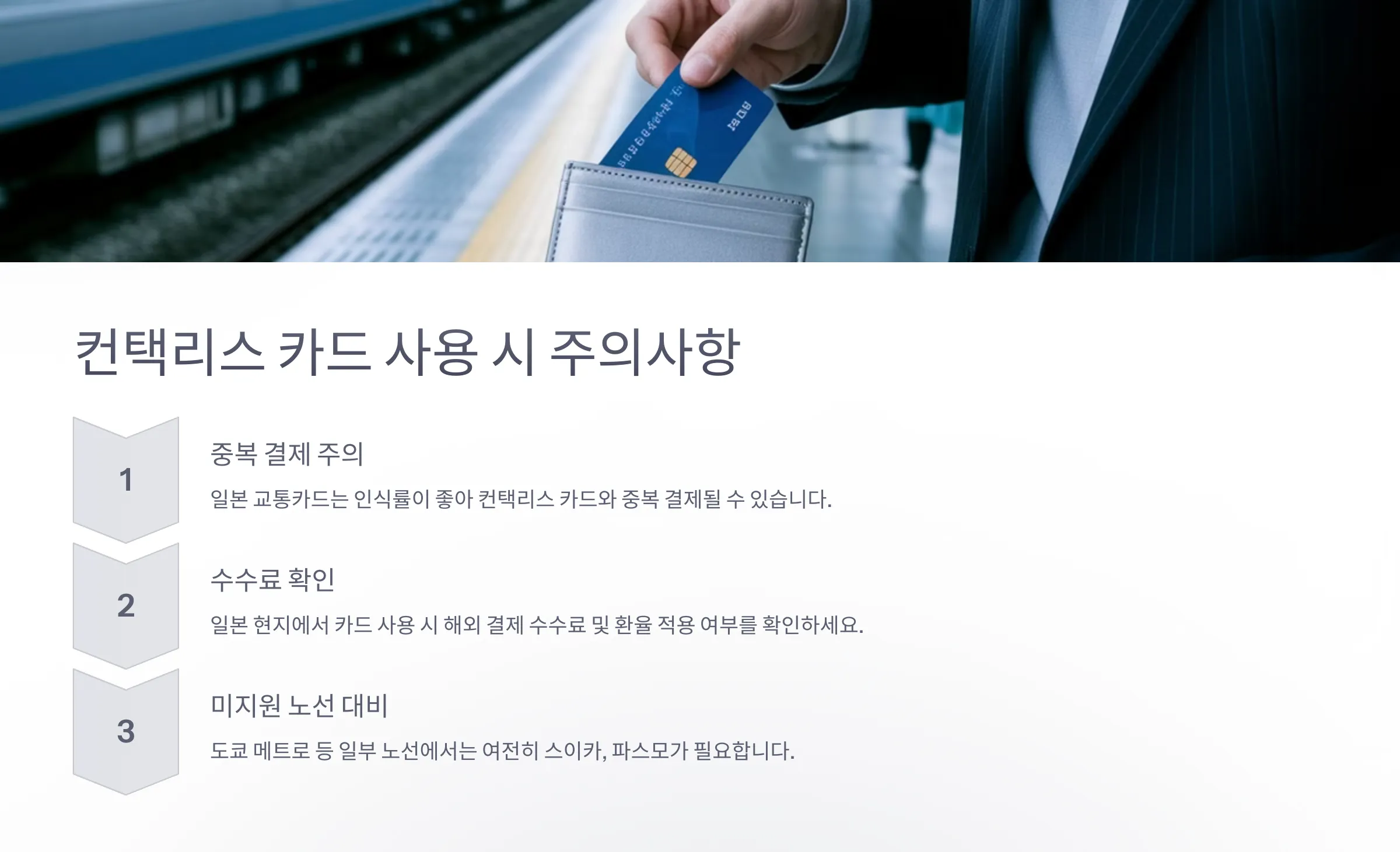 일본 여행을 준비하면서 가장 신경 쓰이는 부분 중 하나가 바로 교통 카드입니다. 일본에서는 스이카(Suica), 파스모(Pasmo) 같은 교통카드가 일반적이지만, 한국에서 발급받은 신용카드나 체크카드로도 일본 대중교통을 이용할 수 있습니다.