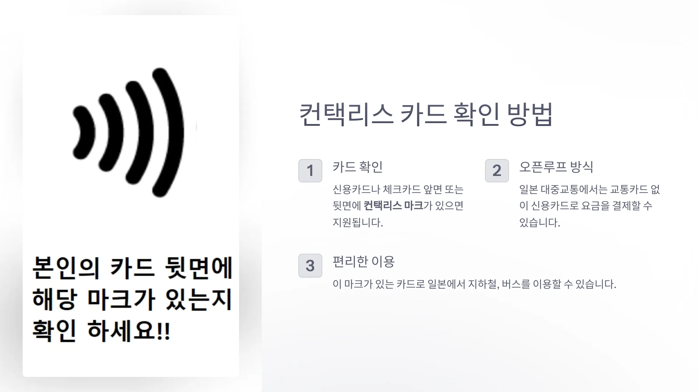 • 일본의 교통카드는 인식률이 좋아서 컨택리스 카드와 중복 결제될 가능성 있음
